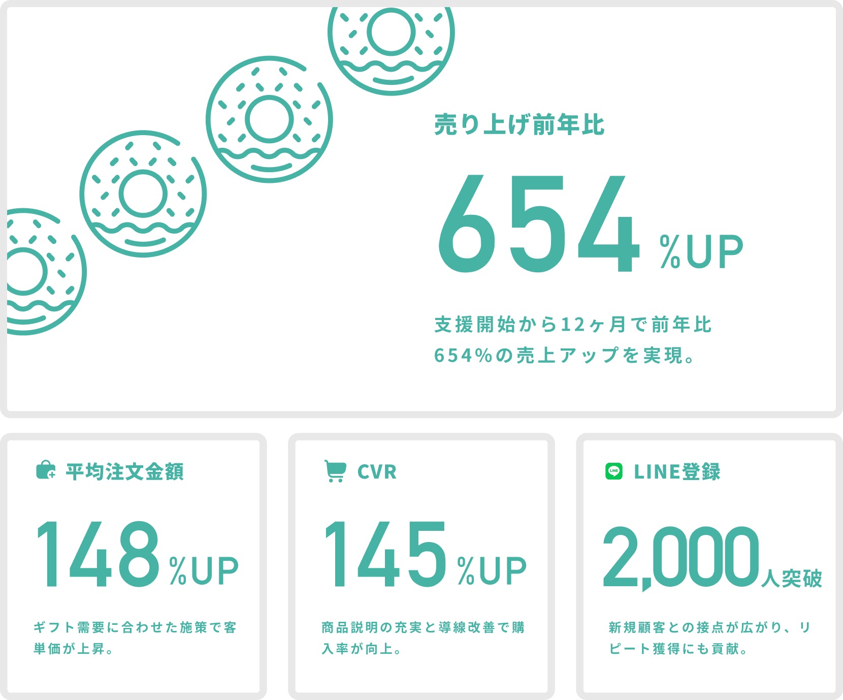 前年比654%の売上アップを達成し、複数の指標で改善が実現。